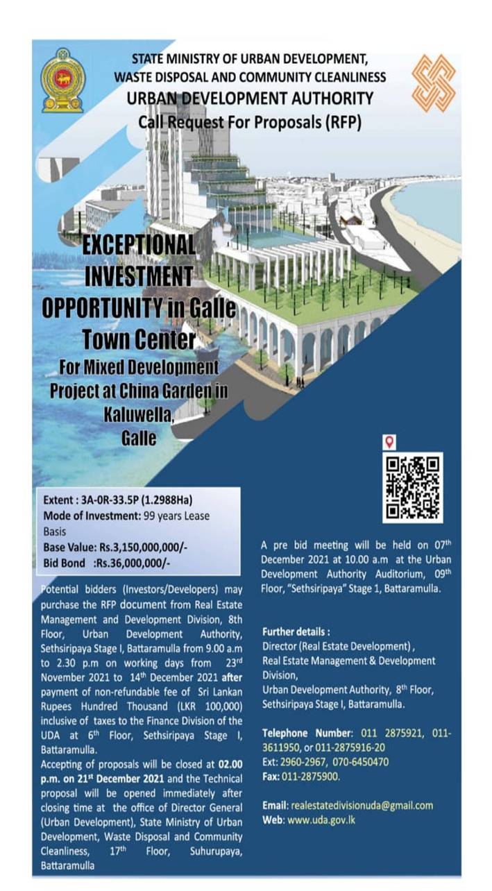 Request For Proposals - A Great Investment opportunities in Hambantota City Center Commercial Zone