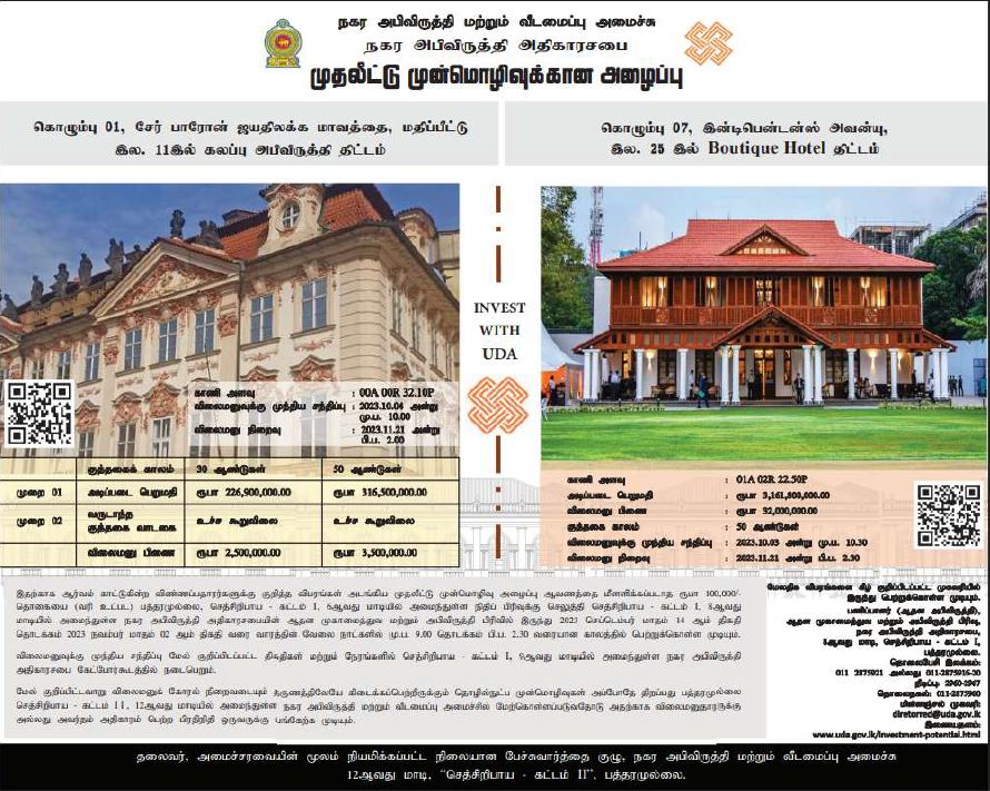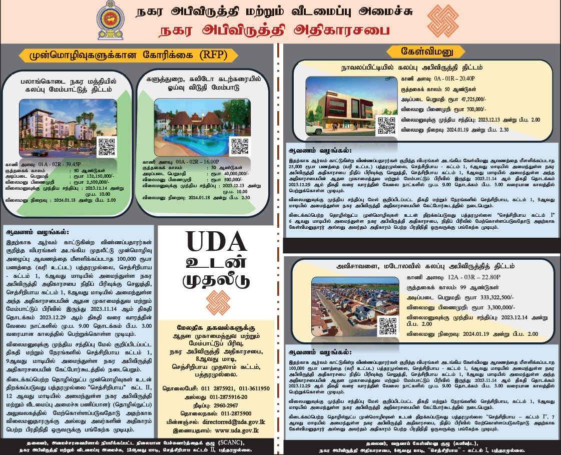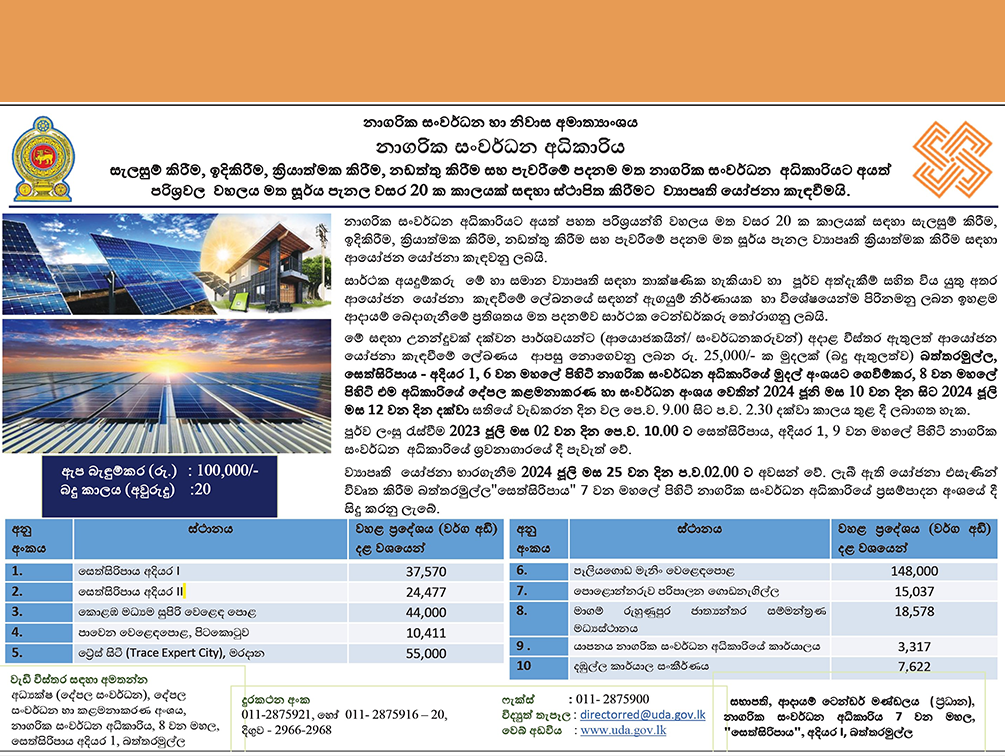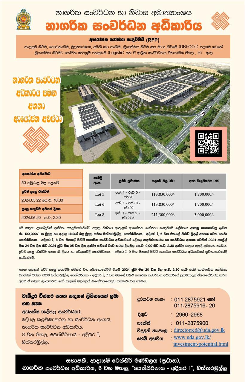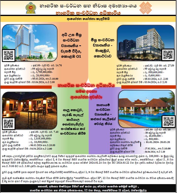 - Calling Tender for Mixed Development Projects at Dambulla