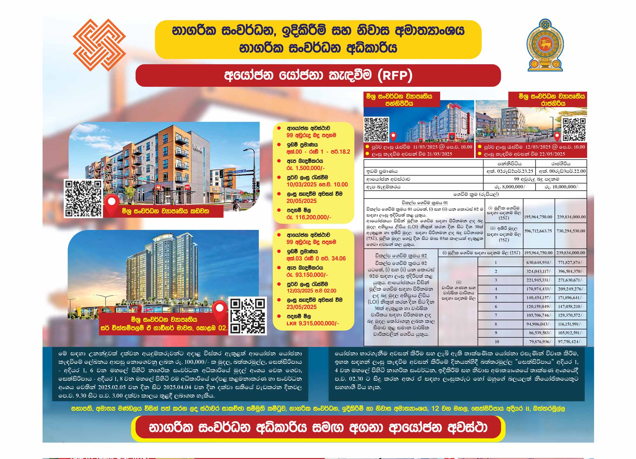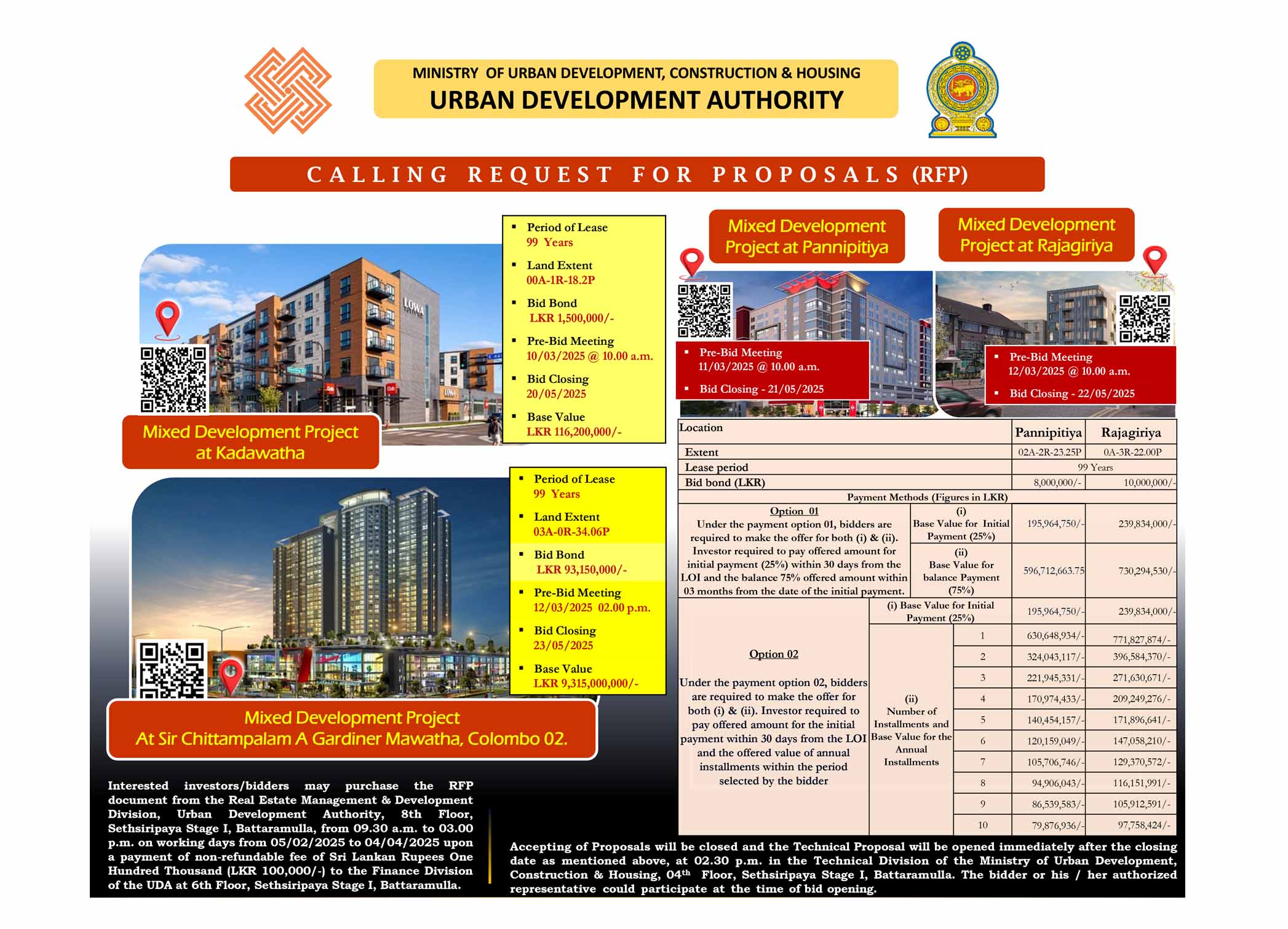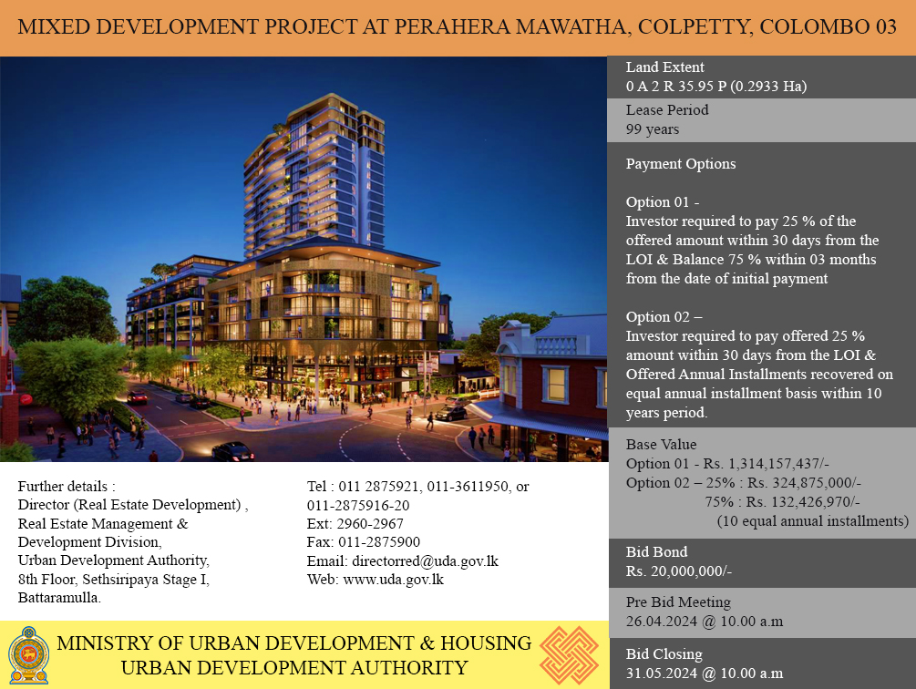 Request For Proposals - High-Rise Mixed Development Projects at D.R.Wijewardena Mawatha, Colombo 10