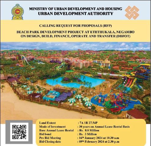 - Beach Park Development Project at Eththukala, Negambo On Design, Build, Finance, Operate and Transfer (DBFOT)