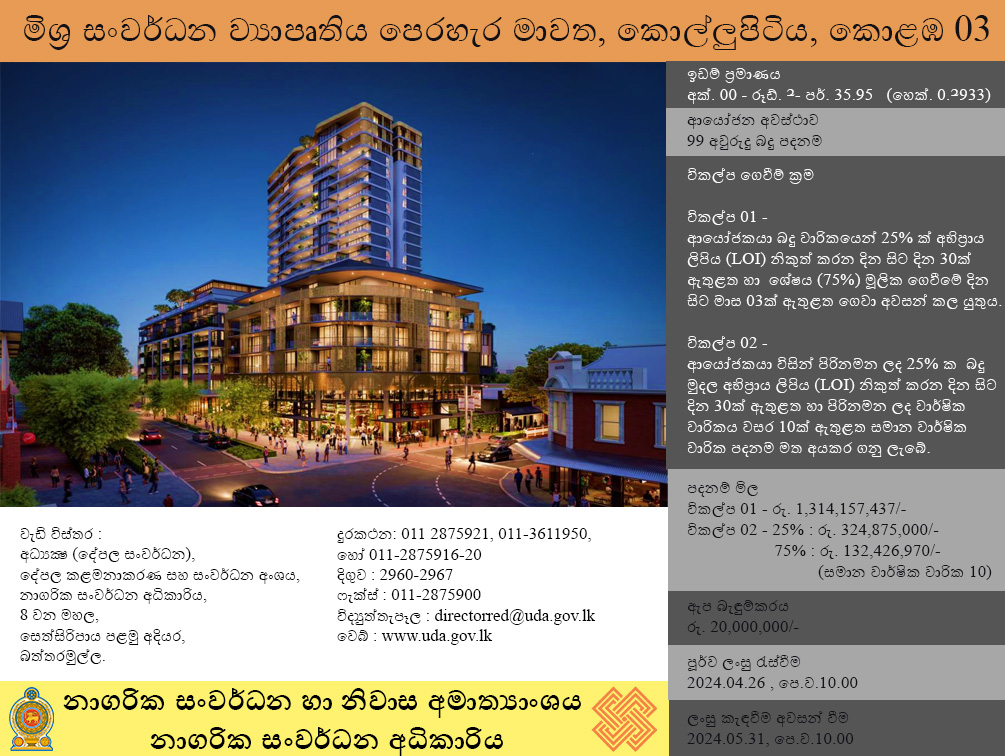 - Calling Tenders for Mixed Development Project at Kolonnawa