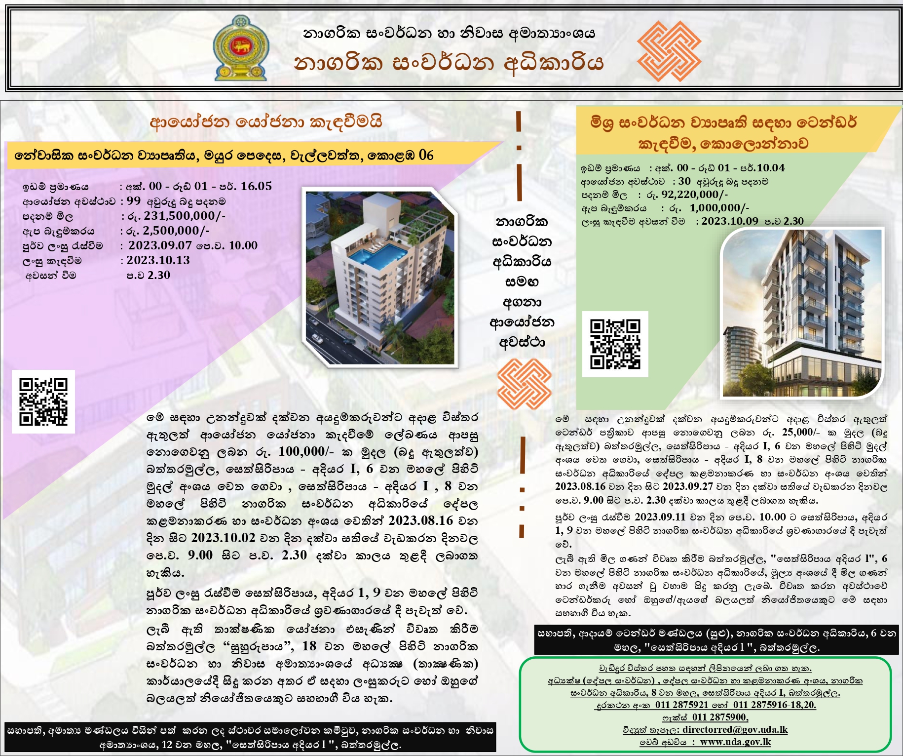 - CALLING TENDER - MIXED DEVELOPMENT PROJECT AT KADAWATHA, PANNIPITIYA, RAJAGIRIYA, etc
