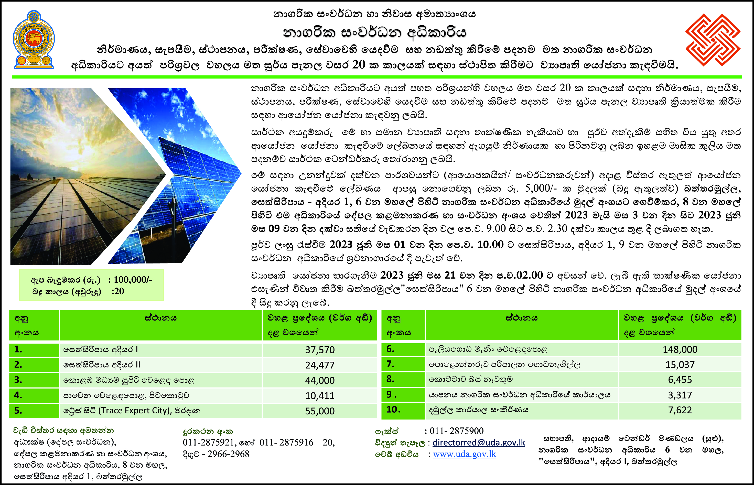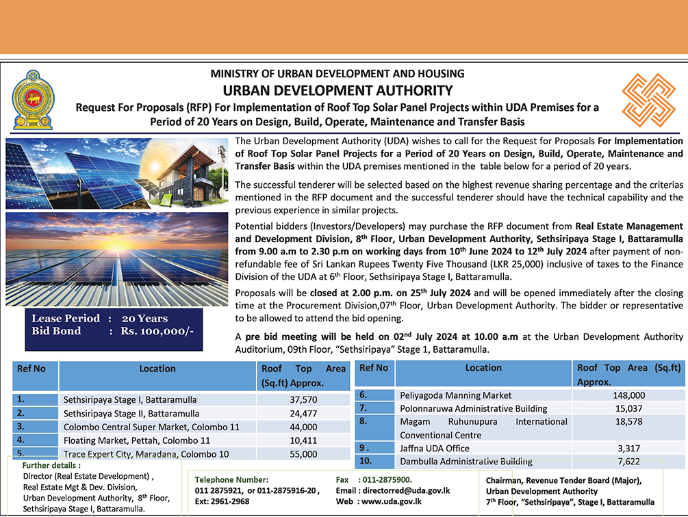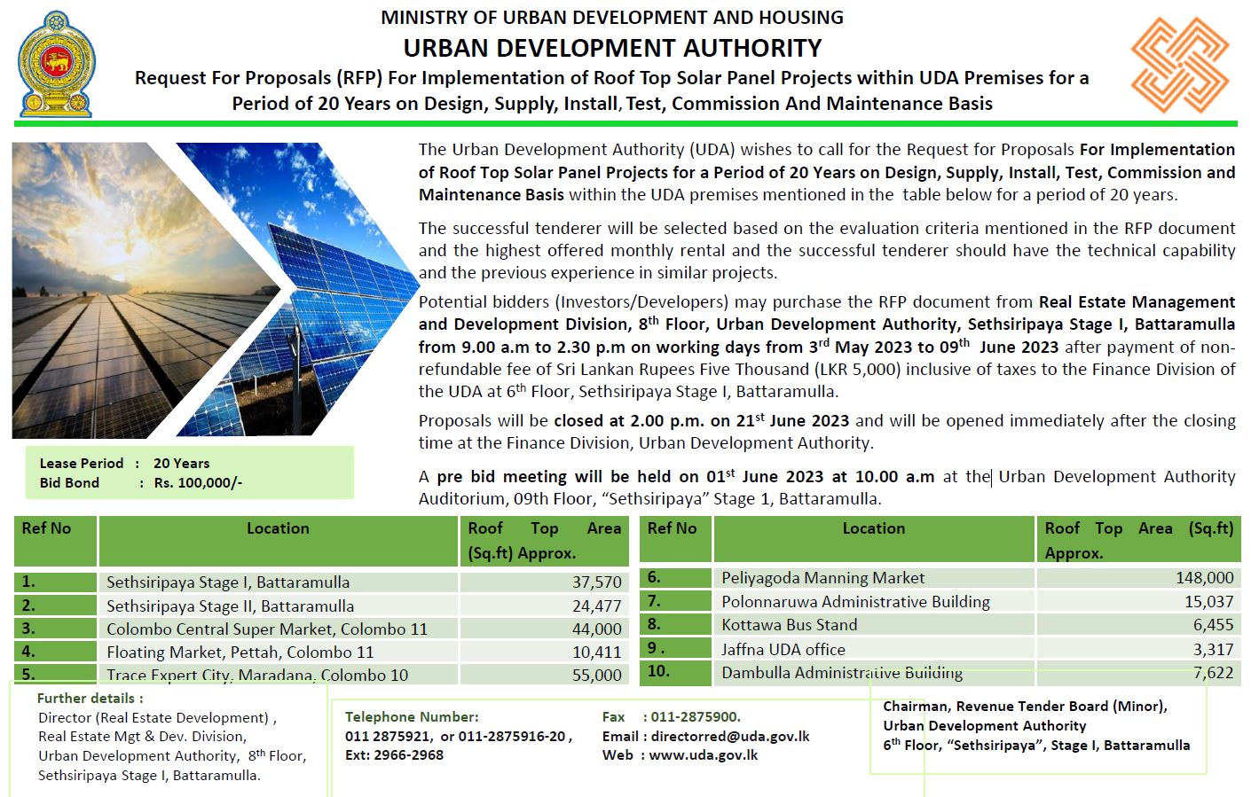 Request For Proposals (RFP) For Implementation of Roof Top Solar Panel Projects within UDA Premises for a