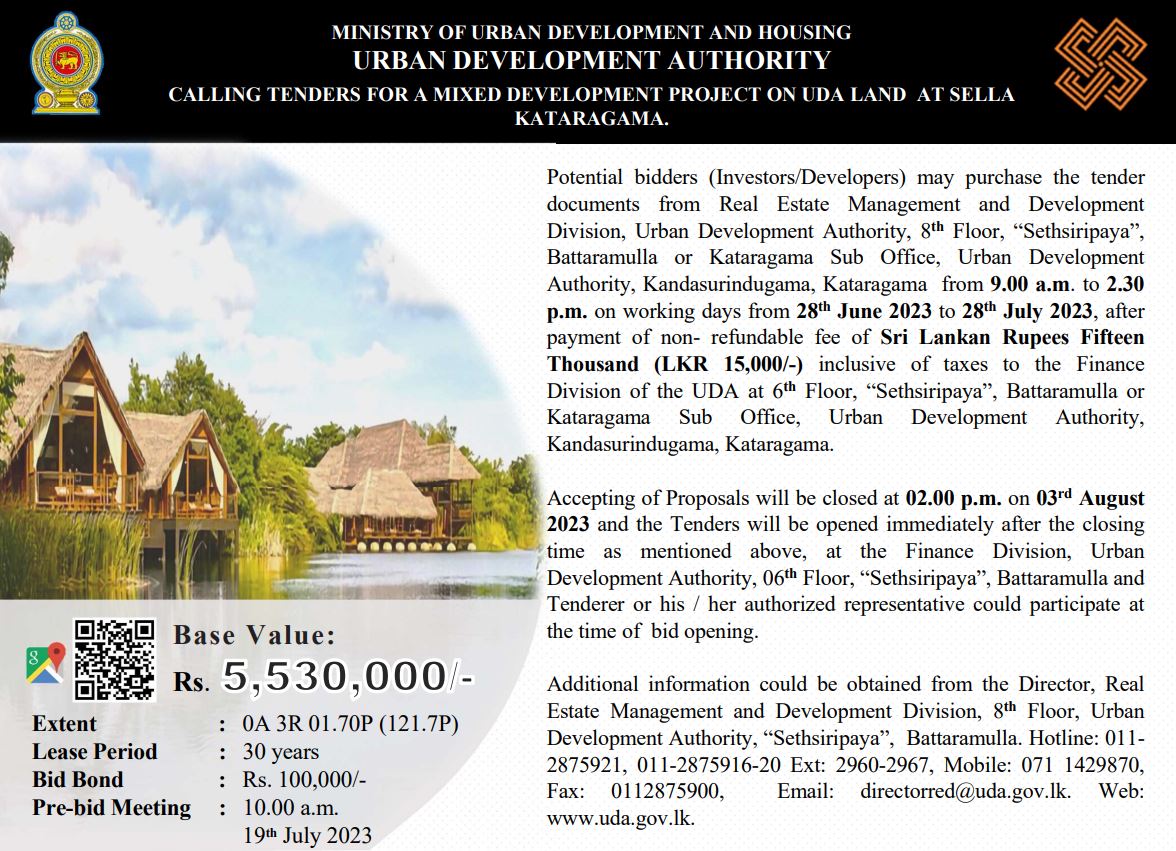 Calling Tenders for Mixed Development Project on UDA Land at Sella Kataragama